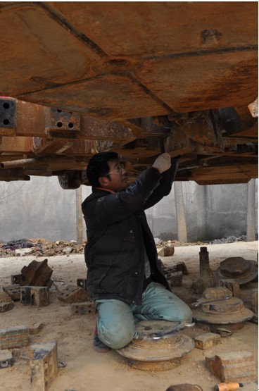 在地下1.4公里的掘進路程,讓盾構(gòu)機從開始的煥然一新到現(xiàn)在渾身都是泥土和銹跡,充滿了“奮斗”的痕跡,如同經(jīng)歷了一場大型戰(zhàn)役般,現(xiàn)在的盾構(gòu)機最需要的是休養(yǎng)和調(diào)整。據(jù)負(fù)責(zé)人李強介紹,盡管配備專門的維修保養(yǎng)人員,但在盾構(gòu)機掘進過程中,仍會出現(xiàn)正常的使用損耗,如刀盤的泡沫孔被淤泥堵塞等,只能等到盾構(gòu)機完全拆卸后才能處理?,F(xiàn)在他們的主要工作就是為盾構(gòu)機去泥、除渣、除銹、刷油,維修損壞部件,進行例行保養(yǎng)。