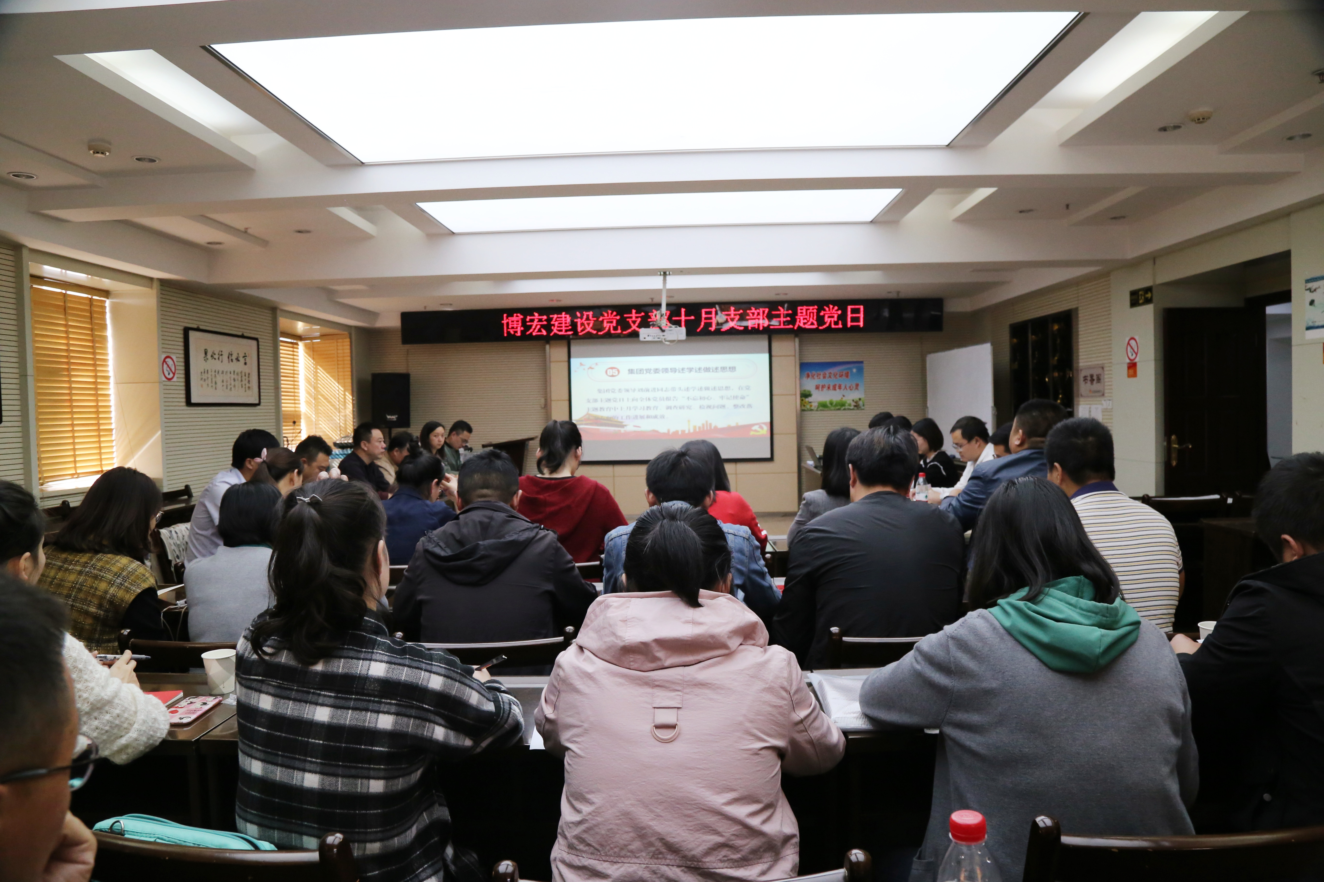 ? ? ? 為扎實開展“不忘初心、牢記使命”主題教育工作,全面把握守初心、擔使命、找差距、抓落實的總要求,10月31日,博宏建設(shè)黨支部在公司大會議室召開了以“述學(xué)述做述思想,發(fā)揮黨員先鋒模范作用”為主題的黨日活動。此次活動包含黨委成員工作匯報、黨員同志學(xué)習交流、習總書記重要講話精神學(xué)習以及觀看警示教育宣傳片等四個環(huán)節(jié)。