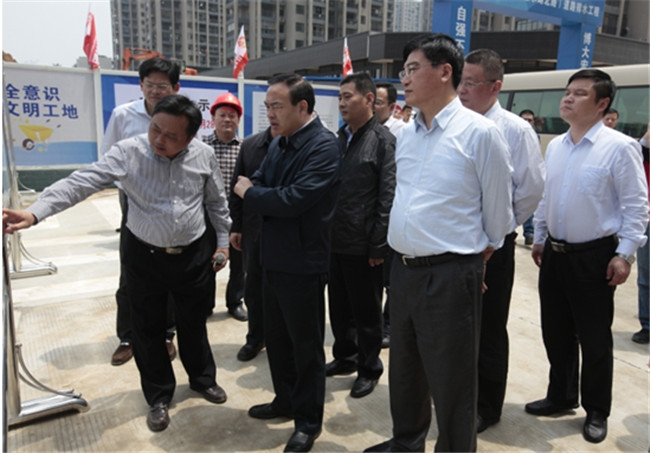 5月5日,武漢市市長唐良智、副市長張光清一行蒞臨博宏建設(shè)十升路道排工程施工現(xiàn)場檢查指導(dǎo)工作。