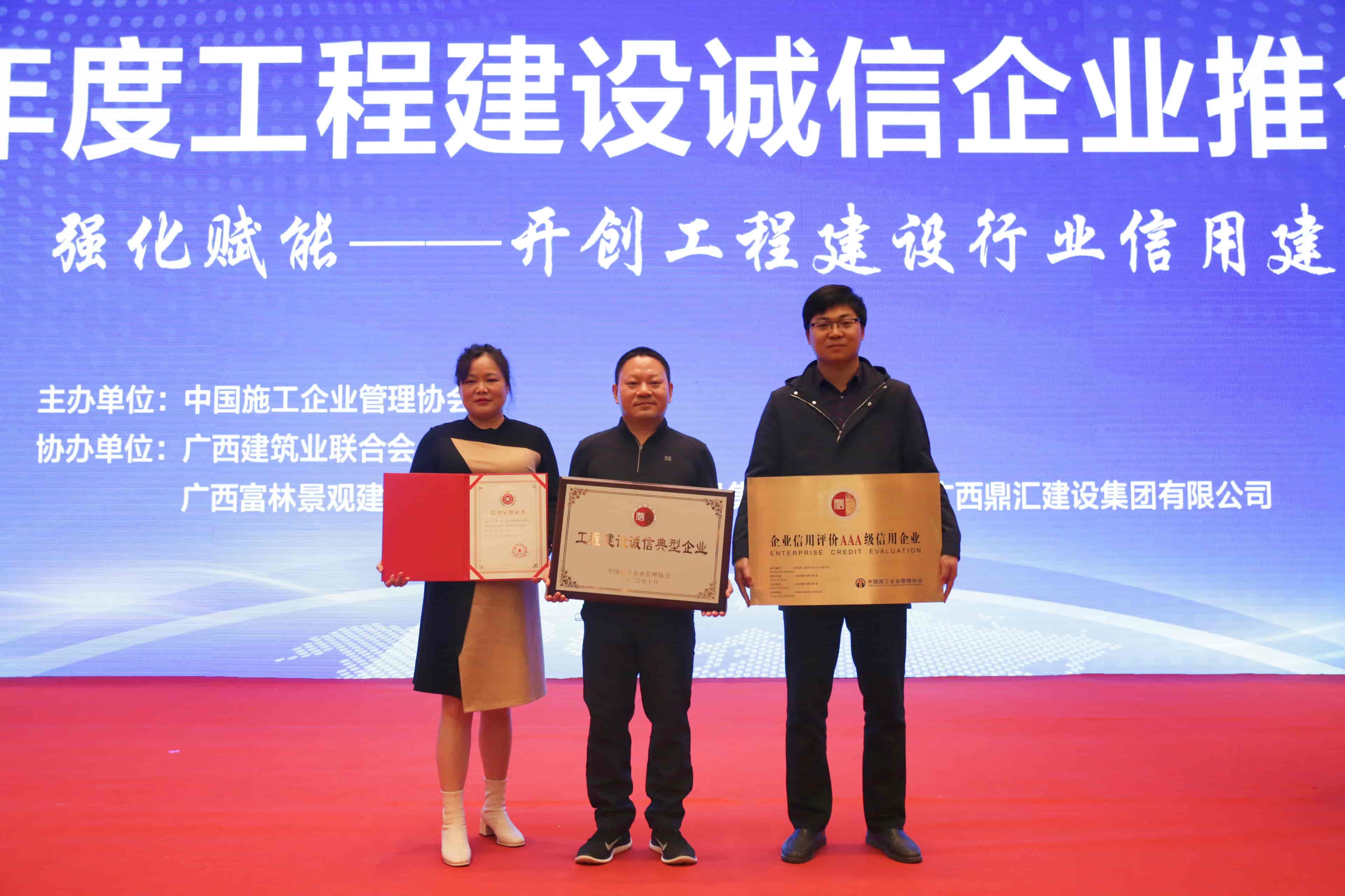 ? ? ? 12月4日,中國施工企業(yè)管理協(xié)會在廣西南寧召開“2020年度工程建設(shè)誠信企業(yè)推介大會”。漢陽市政、漢陽市政天創(chuàng)公司、漢陽市政博宏公司榮獲“2020年度工程建設(shè)誠信典型企業(yè)”“信用星級企業(yè)”“AAA信用等級企業(yè)”3項榮譽,為集團企業(yè)信用獎項開創(chuàng)了新篇章。?