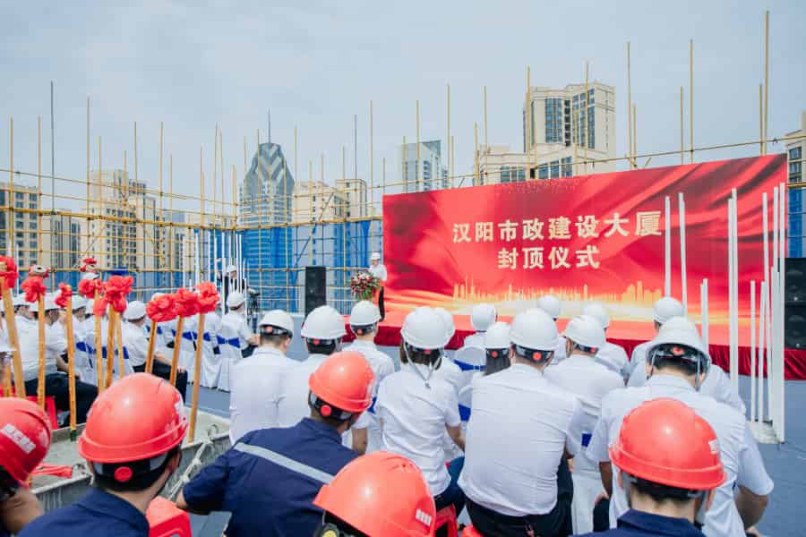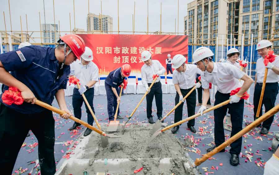 ? ? ? 2021年6月2日上午,漢陽(yáng)市政建設(shè)大廈封頂儀式在項(xiàng)目現(xiàn)場(chǎng)隆重舉行。漢陽(yáng)市政黨委書(shū)記、董事長(zhǎng)嚴(yán)悌文,總經(jīng)理虞志鵬,常務(wù)副總經(jīng)理王智高,黨委副書(shū)記陳穎等集團(tuán)領(lǐng)導(dǎo)班子及集團(tuán)各部門負(fù)責(zé)人,分子公司主要領(lǐng)導(dǎo)以及項(xiàng)目一線建設(shè)者共計(jì)50余人參加了本次封頂儀式。