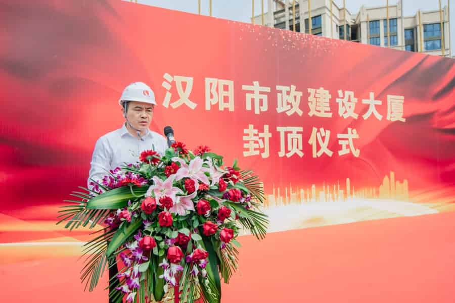 ? ? ? 漢陽(yáng)市政博宏公司董事長(zhǎng)鄒勇首先致辭。鄒勇作為項(xiàng)目承建單位代表對(duì)集團(tuán)公司、兄弟單位、參建各方以及全體項(xiàng)目人員表示歡迎和感謝。他指出,漢陽(yáng)市政建設(shè)大廈項(xiàng)目是集團(tuán)未來(lái)的總部大樓,也是市重點(diǎn)工程,不僅寄托了公司以匠心鑄就行業(yè)標(biāo)桿、以品質(zhì)引領(lǐng)房建市場(chǎng)的美好愿望,也承載了全體漢陽(yáng)市政人快樂(lè)工作、幸福生活的夢(mèng)想。過(guò)去22個(gè)月的時(shí)間里,博宏公司以“咬定青山不放松”的韌勁、“不破樓蘭終不還”的拼勁狠抓項(xiàng)目建設(shè)、嚴(yán)抓項(xiàng)目質(zhì)量安全,克服重重困難取得了項(xiàng)目封頂這一重要階段性成果,接下來(lái),博宏公司將充分發(fā)揮房建專業(yè)優(yōu)勢(shì),貫徹“令行禁止,使命必達(dá)”的企業(yè)作風(fēng),鼓足干勁、真抓實(shí)干,以創(chuàng)魯班獎(jiǎng)為標(biāo)準(zhǔn)高品質(zhì)完成項(xiàng)目建設(shè)。