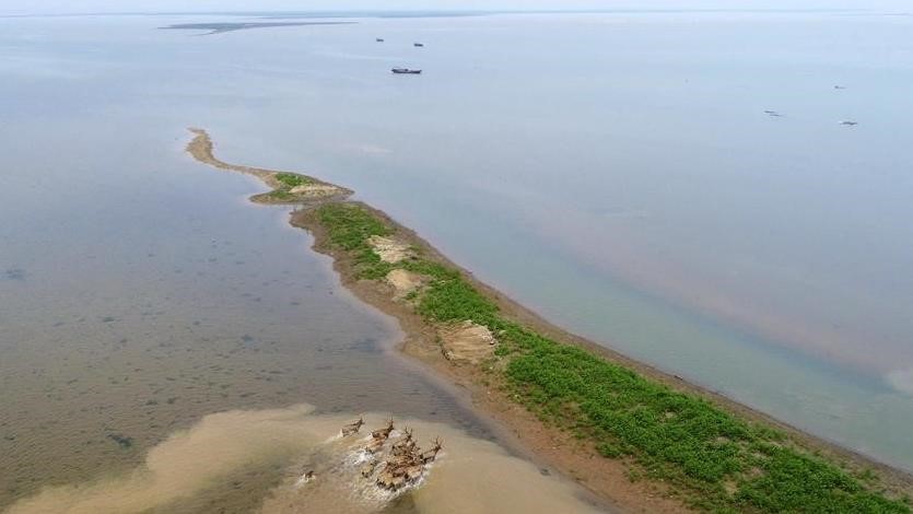 被野放的麋鹿在江西鄱陽(yáng)湖濕地奔跑(來(lái)源:新華網(wǎng))