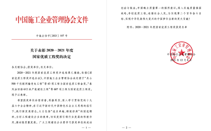 12月7日,中國(guó)施工企業(yè)管理協(xié)會(huì)發(fā)布2020-2021年度第二批國(guó)家優(yōu)質(zhì)工程獎(jiǎng)名單,漢陽(yáng)市政承建的東湖綠道二期工程、金山大道工程、武漢食品檢驗(yàn)中心工程、武漢軌道交通七號(hào)線工程共4個(gè)項(xiàng)目獲此殊榮,獲獎(jiǎng)數(shù)量創(chuàng)歷史新高。今年獲評(píng)項(xiàng)目首次覆蓋園林、橋梁、軌道交通、房建四大專業(yè)領(lǐng)域,公司房建項(xiàng)目在“國(guó)家優(yōu)質(zhì)工程獎(jiǎng)”實(shí)現(xiàn)零的突破。截止目前,漢陽(yáng)市政已累計(jì)榮獲10項(xiàng)“國(guó)家優(yōu)質(zhì)工程獎(jiǎng)”。