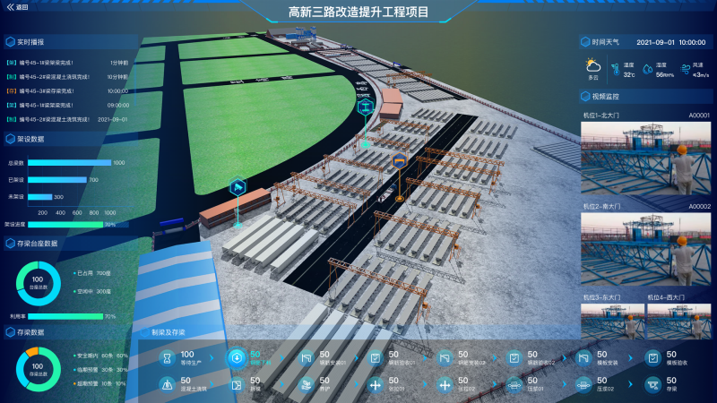 項目以“人工智能應(yīng)用”為主,以“大數(shù)據(jù)智能化”為引領(lǐng),構(gòu)建“智慧交通、智慧橋梁、智慧水務(wù)、智慧管網(wǎng)、智慧路燈”五大智慧工程。項目以BIM+GIS技術(shù)打造的高精度數(shù)字模型為依托,采用預(yù)制裝配式連續(xù)結(jié)構(gòu)及智能機械化設(shè)備,讓智慧建造推動項目建設(shè)智能、高效。項目創(chuàng)新應(yīng)用“項目協(xié)同管理平臺”、“智慧梁場系統(tǒng)”,延伸“項目信息化辦公平臺”,打造工地智慧運維大腦。
