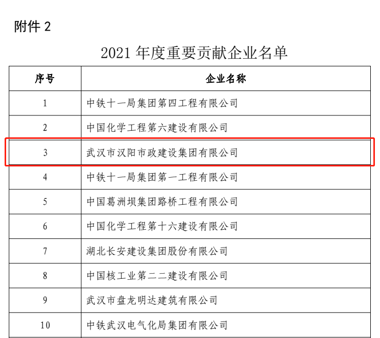 ? ? 3月15日,湖北省住建廳公布115家優(yōu)秀建筑業(yè)企業(yè)名單,揭曉2021年度突出貢獻(xiàn)企業(yè)和重要企業(yè)評選結(jié)果,漢陽市政獲評“2021年度重要貢獻(xiàn)企業(yè)”,獲通報(bào)表揚(yáng)。