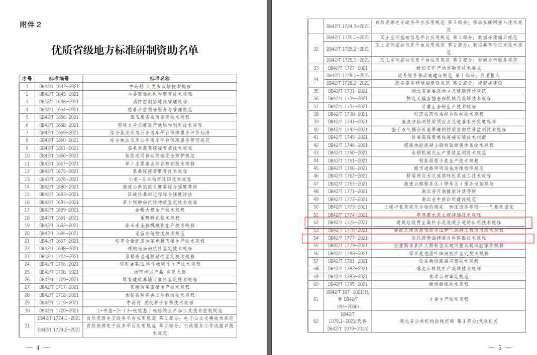 漢陽(yáng)市政入選此次優(yōu)質(zhì)省地標(biāo)為(《建筑垃圾再生集料水泥混凝土道路應(yīng)用技術(shù)規(guī)程》DB42/T 1775-2021、《泡沫瀝青溫拌混合料路面技術(shù)規(guī)程》DB42/T 1777-2021),主要涉及混凝土和瀝青材料的推廣應(yīng)用,標(biāo)志著公司在垃圾資源化利用和泡沫瀝青的應(yīng)用推廣等方面得到行業(yè)認(rèn)可,達(dá)到省內(nèi)領(lǐng)先水平,具有較高的推廣應(yīng)用價(jià)值,為將來(lái)在道路工程的新材料與綠色技術(shù)的研發(fā)和推廣提供有力支撐。