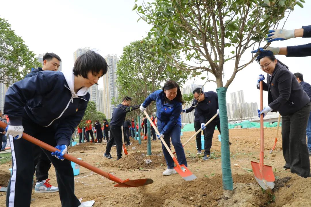 最后,植樹環(huán)節(jié),大家紛紛戴上志愿者袖章、馬甲及帽子,進(jìn)行植樹前的準(zhǔn)備工作。“咔咔咔……”,現(xiàn)場(chǎng)植樹鏟土的聲音此起彼伏,大家在這里揮灑汗水,種下一片青翠,系掛祝福書簽,許下更美好的未來。