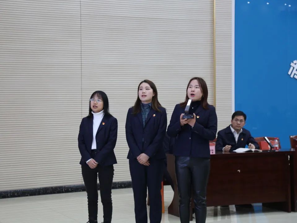 ? ? “起來,不愿做奴隸的人們……”慷慨激昂的國歌,叩響了黨員心中的時(shí)代最強(qiáng)音。在黨員代表王沿娣的帶領(lǐng)下,全體參會(huì)黨員重溫了入黨誓詞。唐漢高代表在場黨員誦讀《黨章》第七章《黨的紀(jì)律》。隨后彭博、周靜帶領(lǐng)大家分別深入學(xué)習(xí)了黨的二十屆二中全會(huì)精神和習(xí)近平新時(shí)代總書記對深入開展學(xué)雷鋒活動(dòng)作出的重要指示精神,勉勵(lì)全體黨員要以全會(huì)精神為指導(dǎo),保持戰(zhàn)略清醒,發(fā)揚(yáng)斗爭精神,并把雷鋒精神融入日常、化作經(jīng)常,為中國式現(xiàn)代化建設(shè)貢獻(xiàn)青年力量。黨員代表們依次領(lǐng)學(xué)省市級(jí)最新廉政相關(guān)文件精神。黨員代表黎亞玲、曾文、陳睿琳分享自身對黨員不信教、不參加宗教活動(dòng)的認(rèn)識(shí)和體會(huì),號(hào)召全體黨員要堅(jiān)持以習(xí)近平新時(shí)代中國特色社會(huì)主義思想為指導(dǎo),把好理想信念總開關(guān),做馬克思主義的堅(jiān)定信仰者和忠實(shí)踐行者。