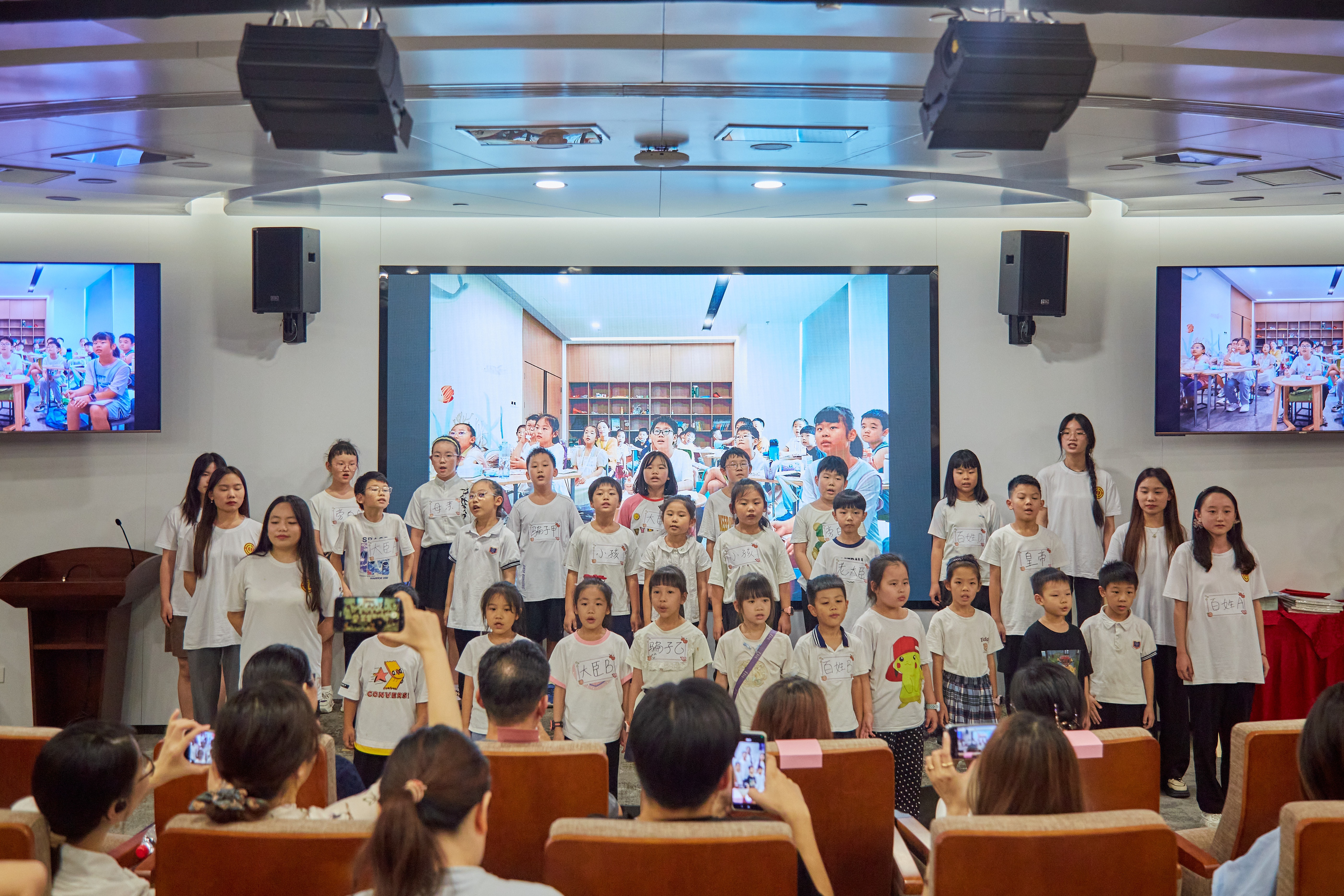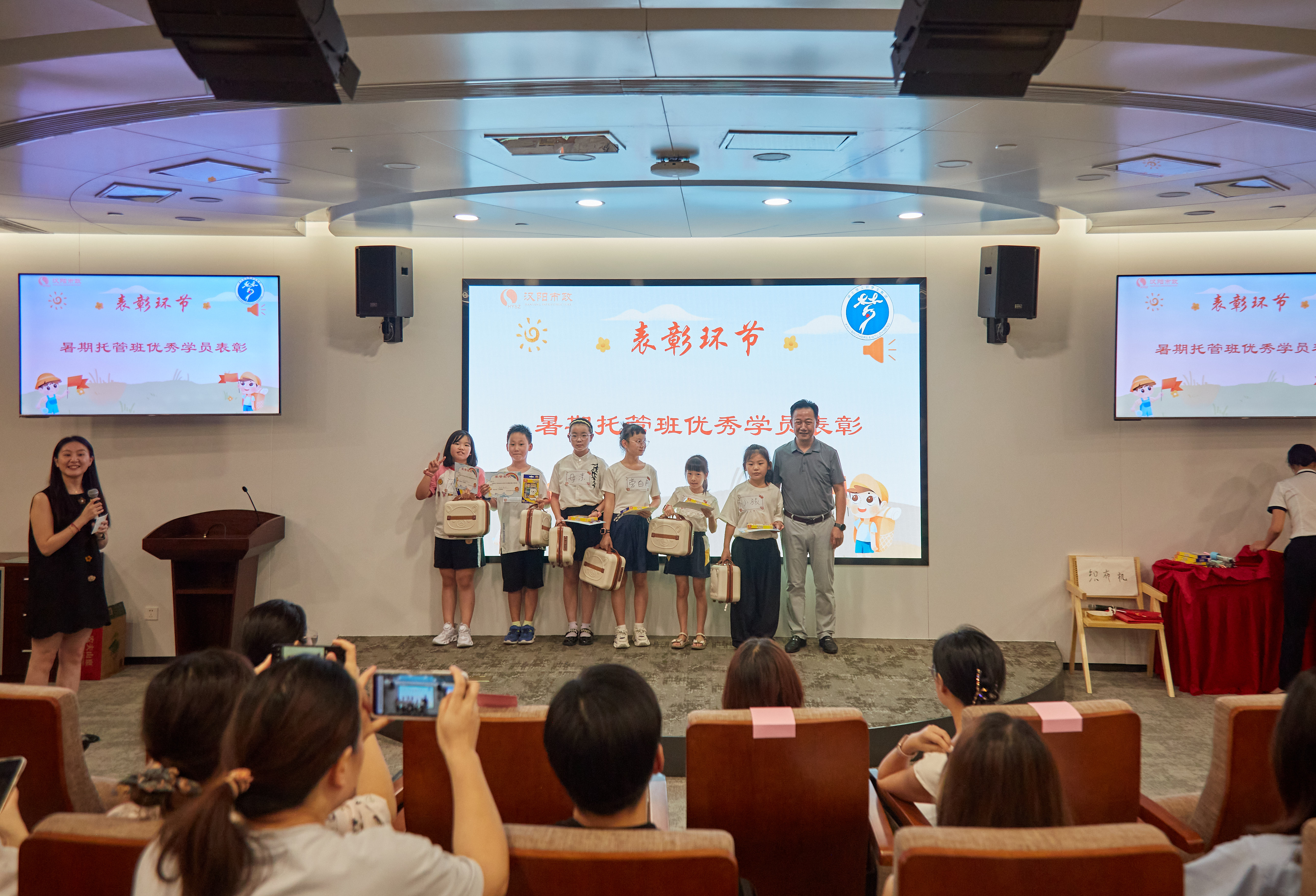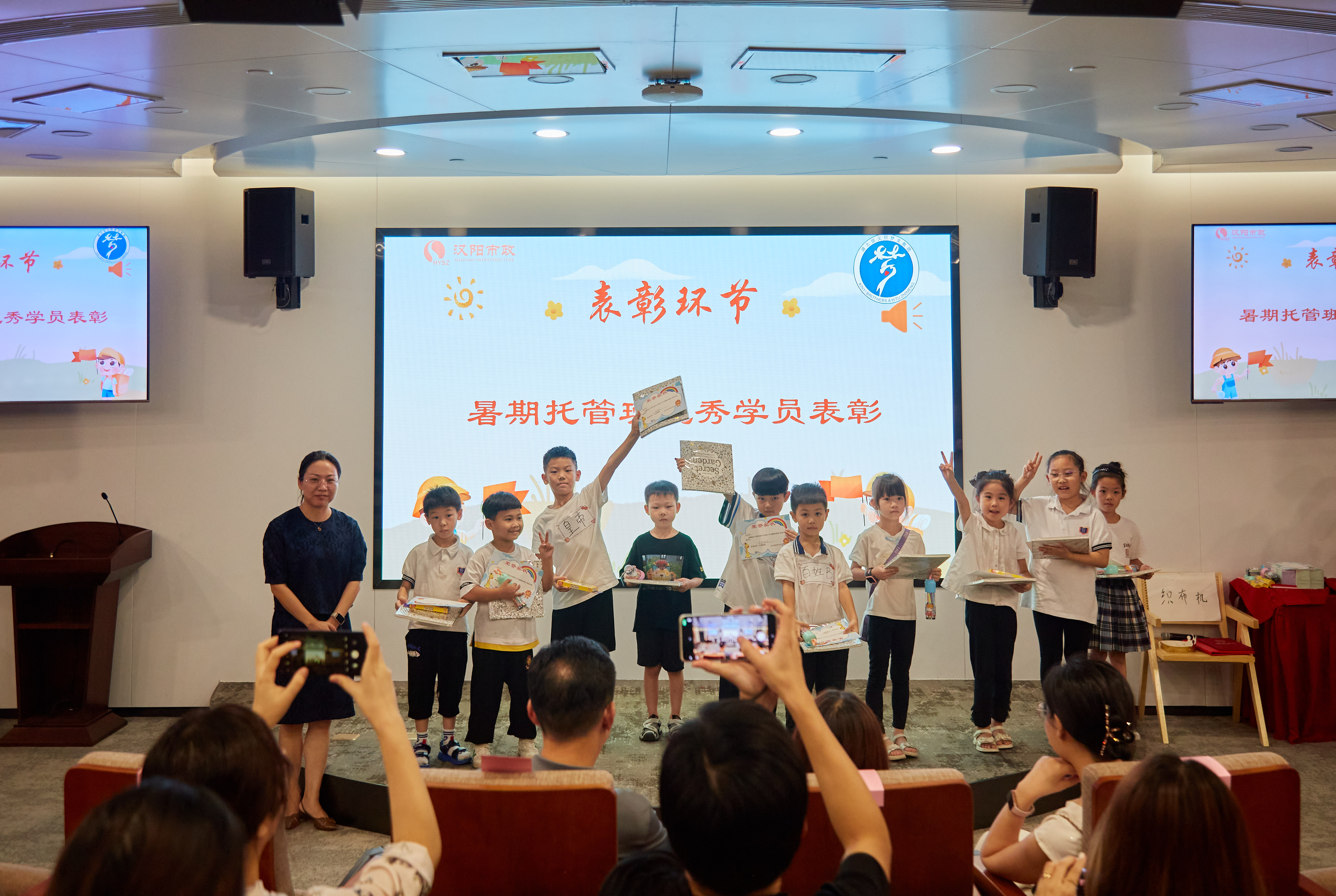 本次結(jié)營儀式在溫馨的暖場視頻里拉開序幕,暖場視頻記錄了32位漢陽市政職工子女在暑期托管班中學習生活的點滴日常。