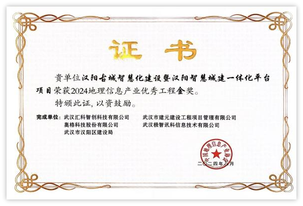 除本次榮膺“金標杯”特等獎,該項目在此前已獲得2024中國地理信息產(chǎn)業(yè)優(yōu)秀工程金獎、2023年武漢科技創(chuàng)新大賽月度分賽一等獎等榮譽,并入選住建部新城建展覽展示中心主展案例、2023年“中國建造”品牌創(chuàng)新實踐案例、中央網(wǎng)信辦2023年數(shù)字化綠色化協(xié)同轉(zhuǎn)型發(fā)展優(yōu)秀案例。