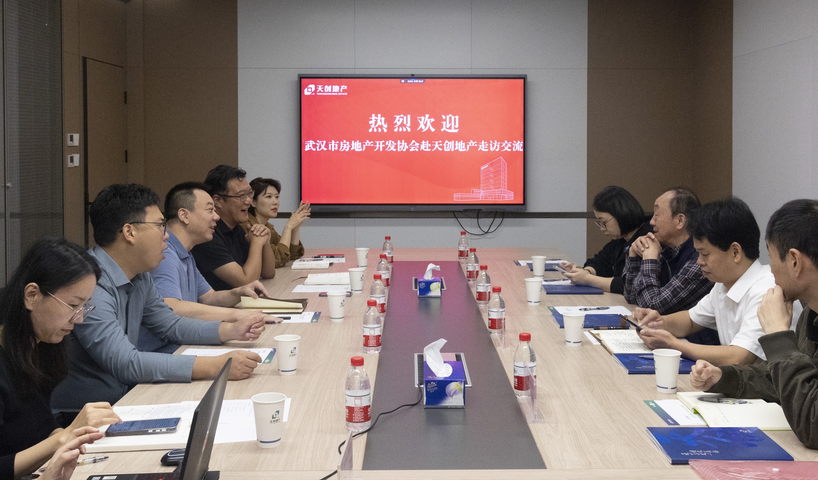10月16日,武漢市房地產(chǎn)開發(fā)協(xié)會(huì)會(huì)長張漢培一行赴漢陽市政天創(chuàng)地產(chǎn)開展走訪交流活動(dòng)。漢陽市政常務(wù)副總經(jīng)理、天創(chuàng)地產(chǎn)董事長錢濤,天創(chuàng)地產(chǎn)總經(jīng)理李軍偉等陪同交流。